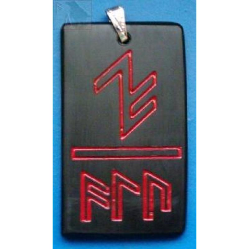 Das obere Zeichen gibt als Binderune die gleichsam getarnte und abgekürzte Zauberformel ALU wieder. Da die Binderune gleichzeitig auch eine Zweigrune darstellt, so ergibt sich ætt I (hier Freys – ætt) und die Stelle 2 = U, wodurch das volle Wort ALU herauskommt. Für die Formel ALU finden sich mehrere Schreibweisen auch in umgekehrter Form. Durch die doppelte Anbringung der Zauberformel war der Gegenstand nicht nur Schmuck sondern gleichzeitig Amulett.